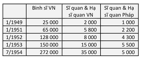 Tháng 1-1949 là thời điểm ngay sau khi Phạm Duy viết Bà Mẹ Gio Linh, sĩ quan và hạ sĩ quan VN đã gấp đôi Pháp. Đến tháng 7-1954 gấp 7 lần.