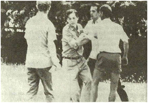 đẩy ra cửa giao nộp cho Khmer Đỏ, ngày 20/4/1975. Hình trong báo